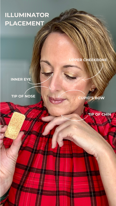 Powder Illuminators — I can't believe they are all being discontinued! Illuminators give you a dewy finish. Place on the high points of your face. They catch the light and give you a touch of dewiness. The powder illuminators are bolder than the creams and are great for photos, date nights, or events. They're gorgeous! And they can be worn as eyeshadow too! Goldie powder illuminator is pictured below. I can't pick a favorite. I love them ALL!